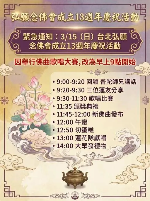 回顧 普陀師兄分享、蓮友分享、歌唱比賽、新佛曲發布、蓮花隊獻唱、佛號相隨贈禮等活動