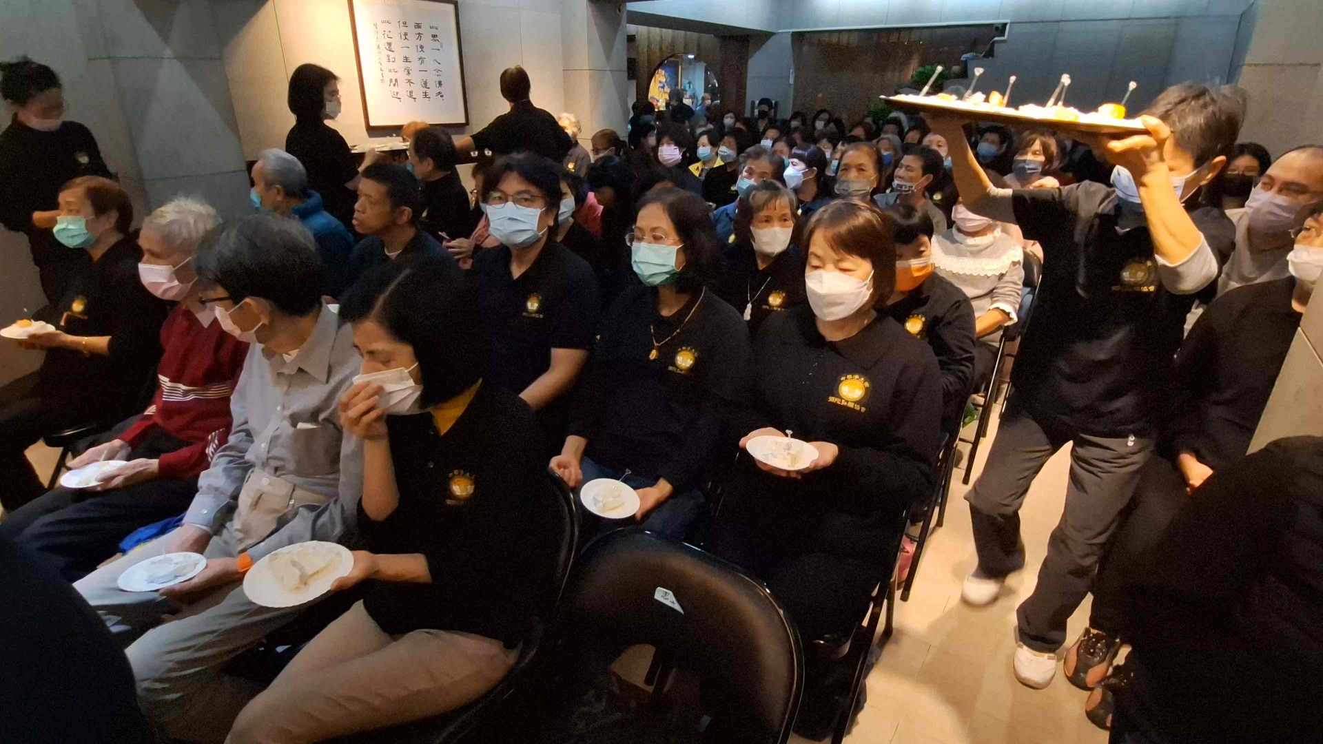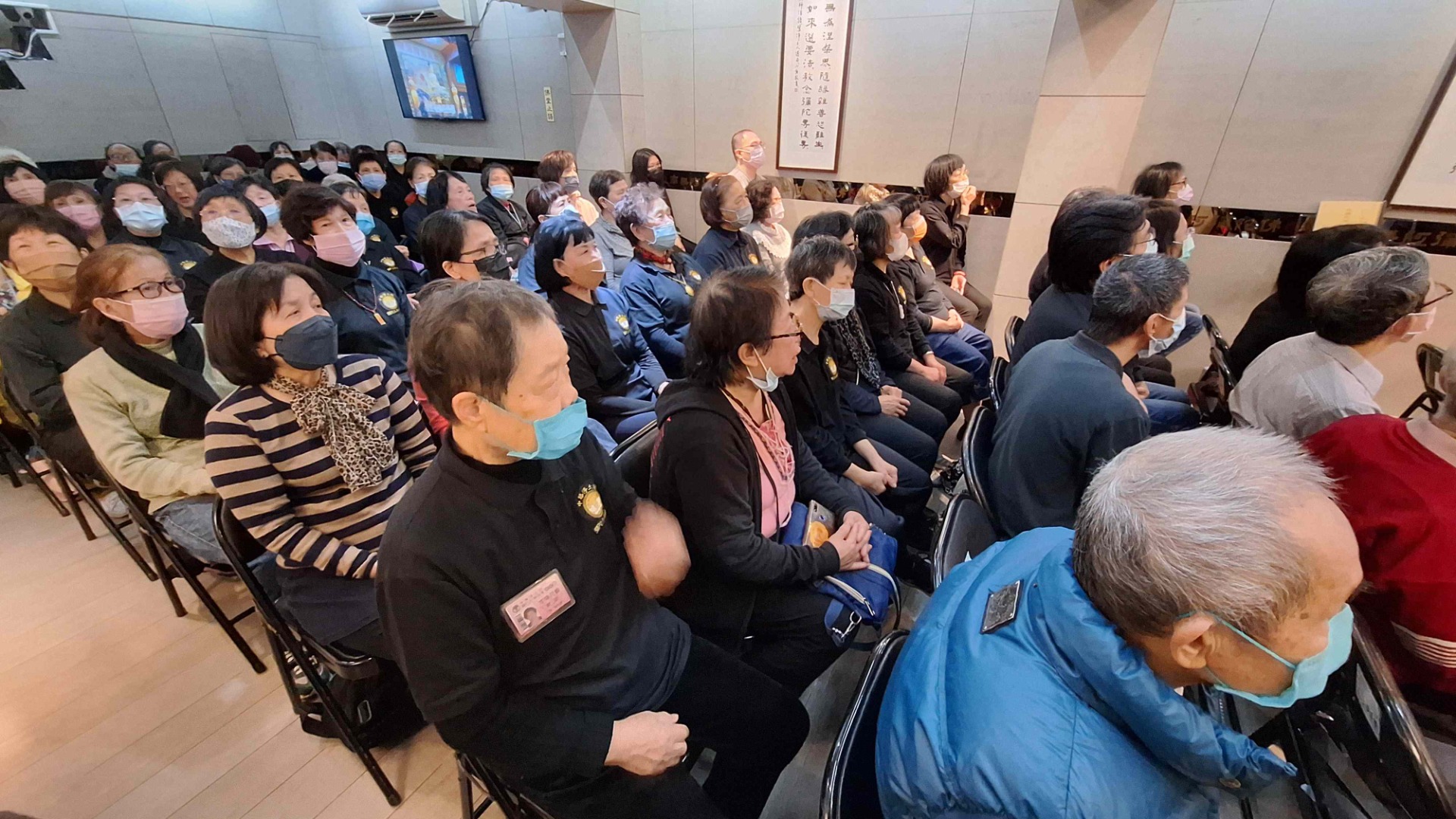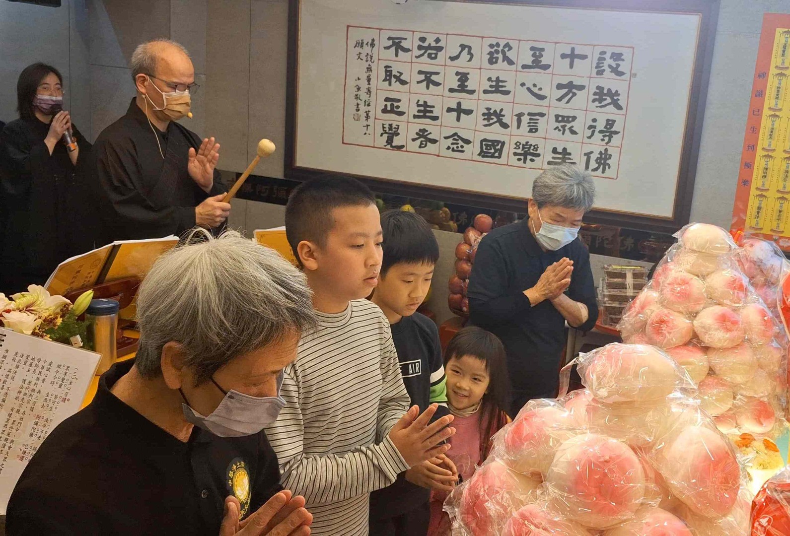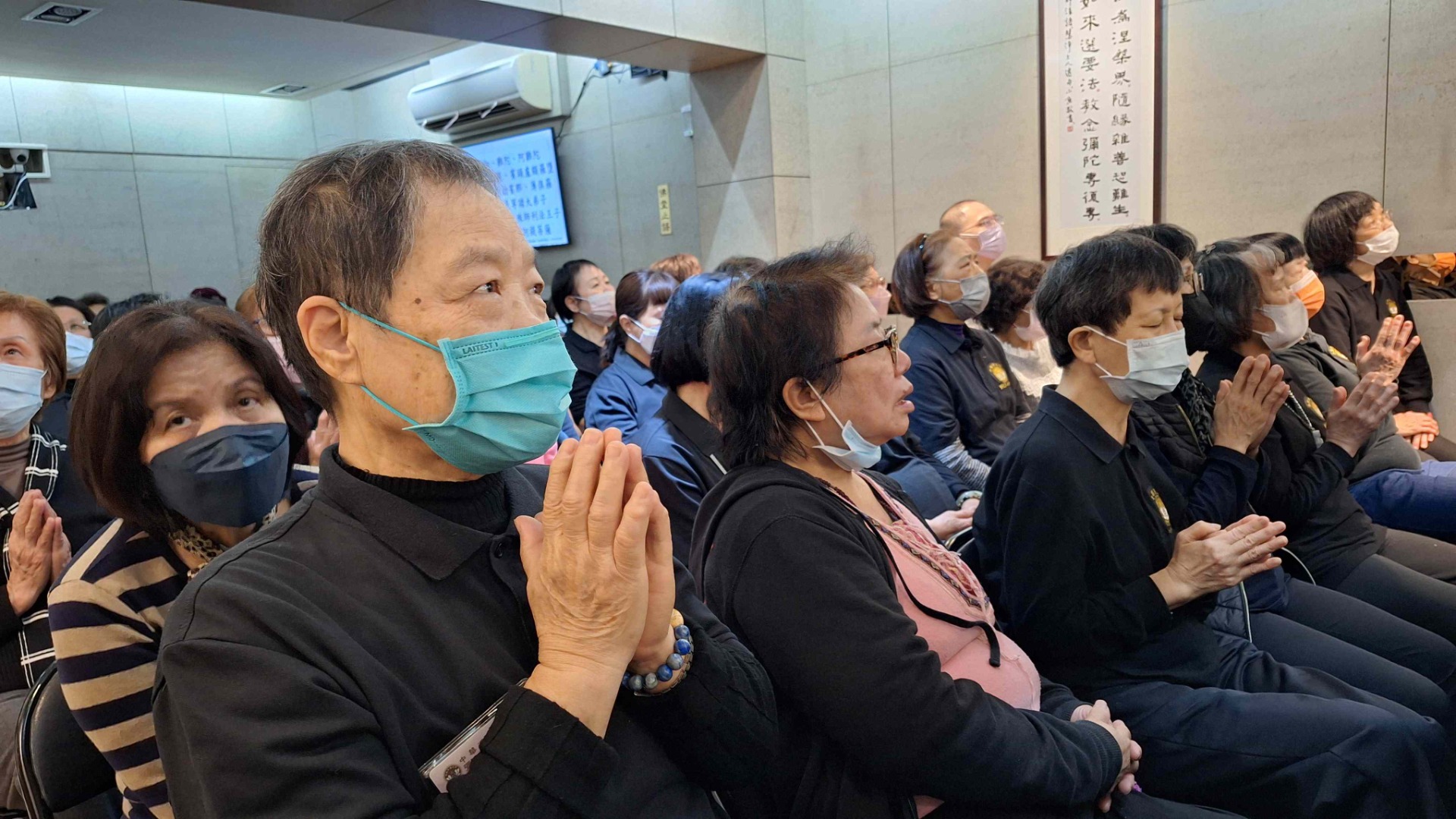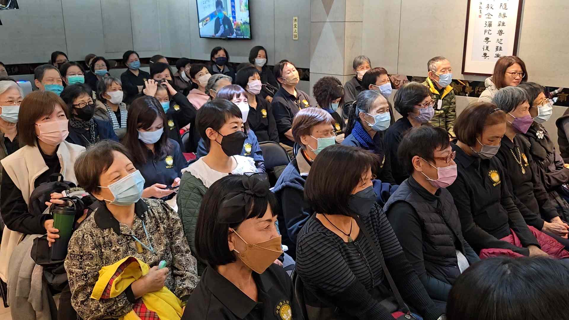 法會中,我們以至誠的心,祈願蒙受佛光救度祖先、冤親債主、累世父母與嬰靈等,接引往生西方極樂世界。同時,我們也將無盡的祝福給予在世的親友,祈願他們業障消除、身體康健、萬事如意;為病者祈求早日康復,為健康者祈求福壽綿長,安享吉祥人生。正如《無量壽經》中所言:「純孝之子,愛敬父母。」阿彌陀佛以無盡的悲心護佑眾生,如同純孝之子般敬愛父母,願眾生皆得解脫。在莊嚴殊勝的法會中,一位師姊注意到旁邊的蓮友因冷而瑟縮,便悄然將自己的暖暖包遞了過去。這樣一個不經意的善行,卻暖透了旁人的心。這樣的關懷,正是彌陀之家——弘願這個大家庭的縮影,一個充滿法喜與溫暖的地方,處處洋溢著無私的關愛。