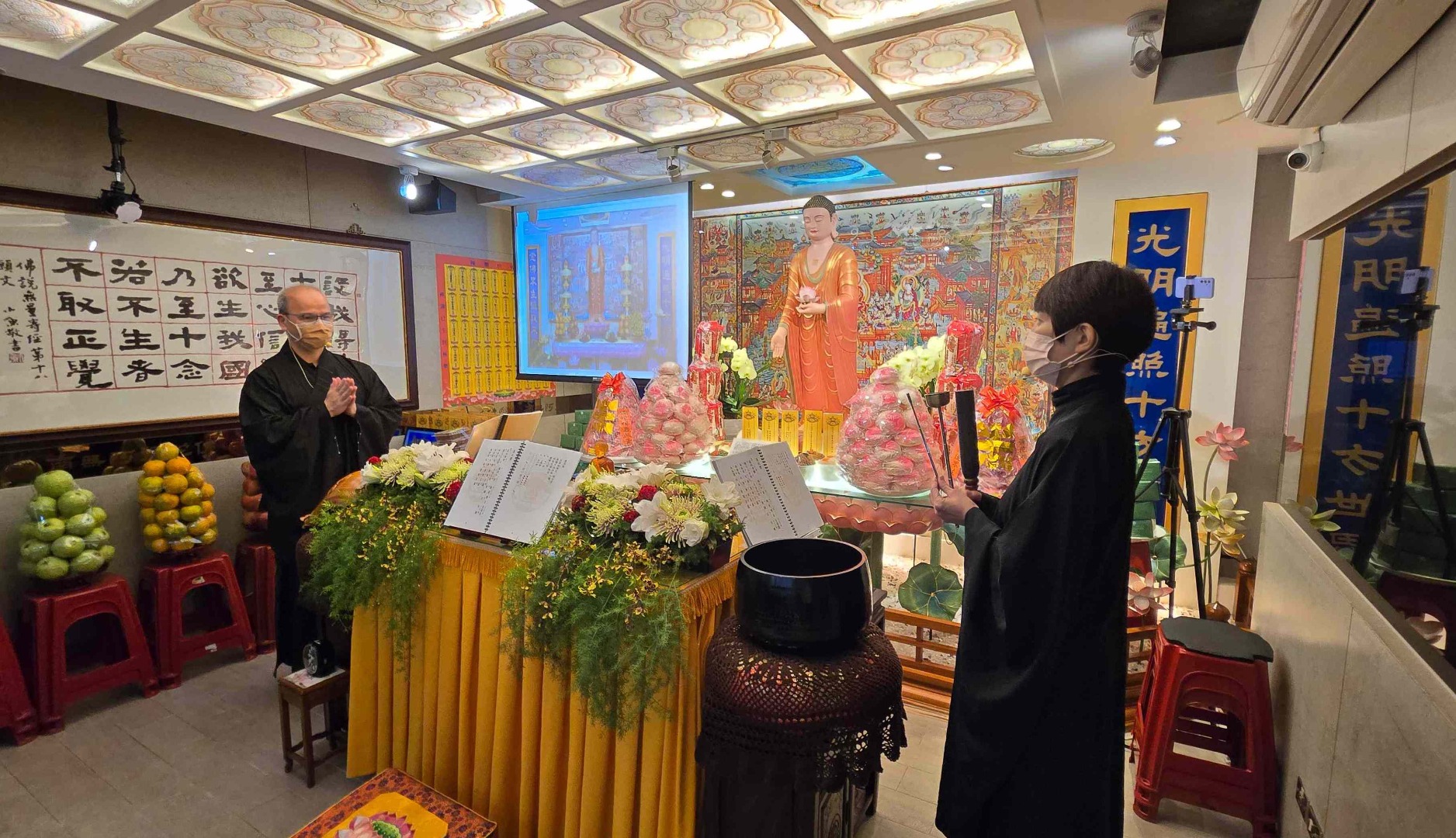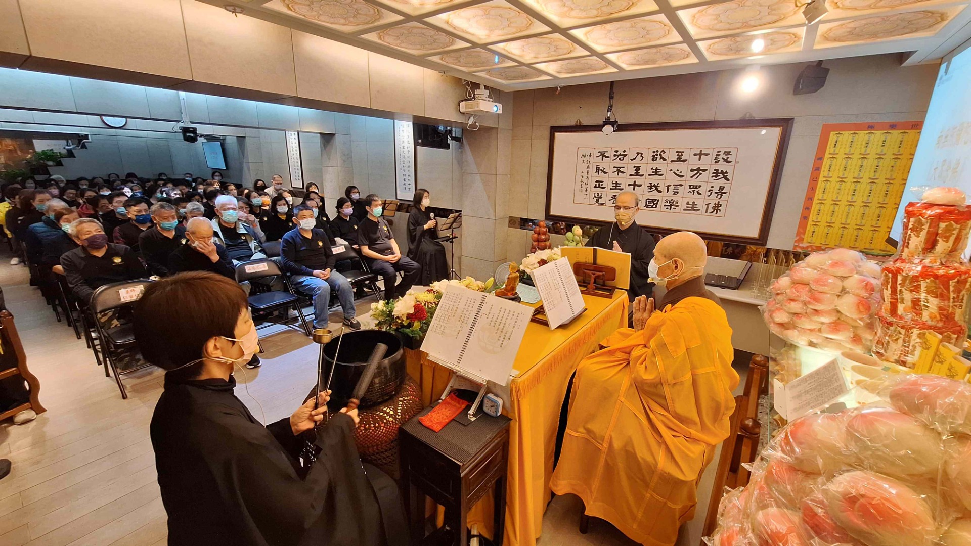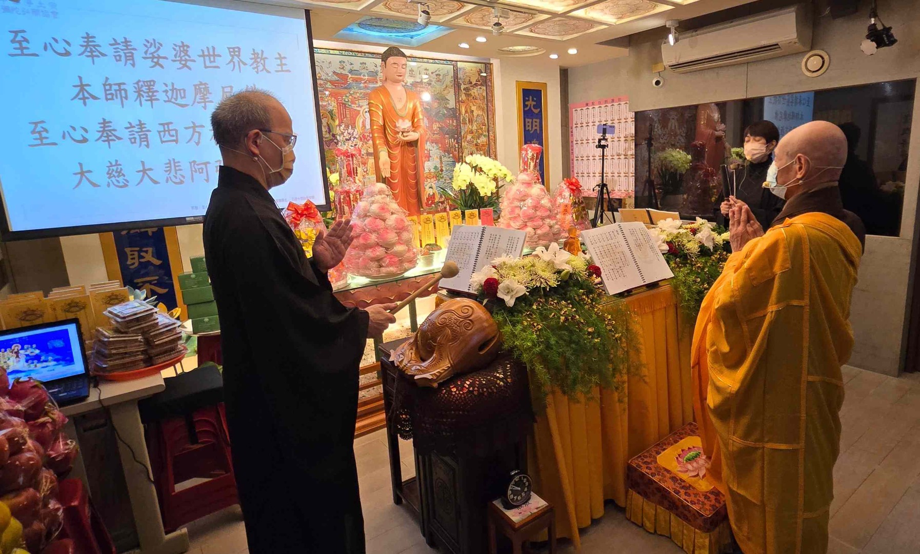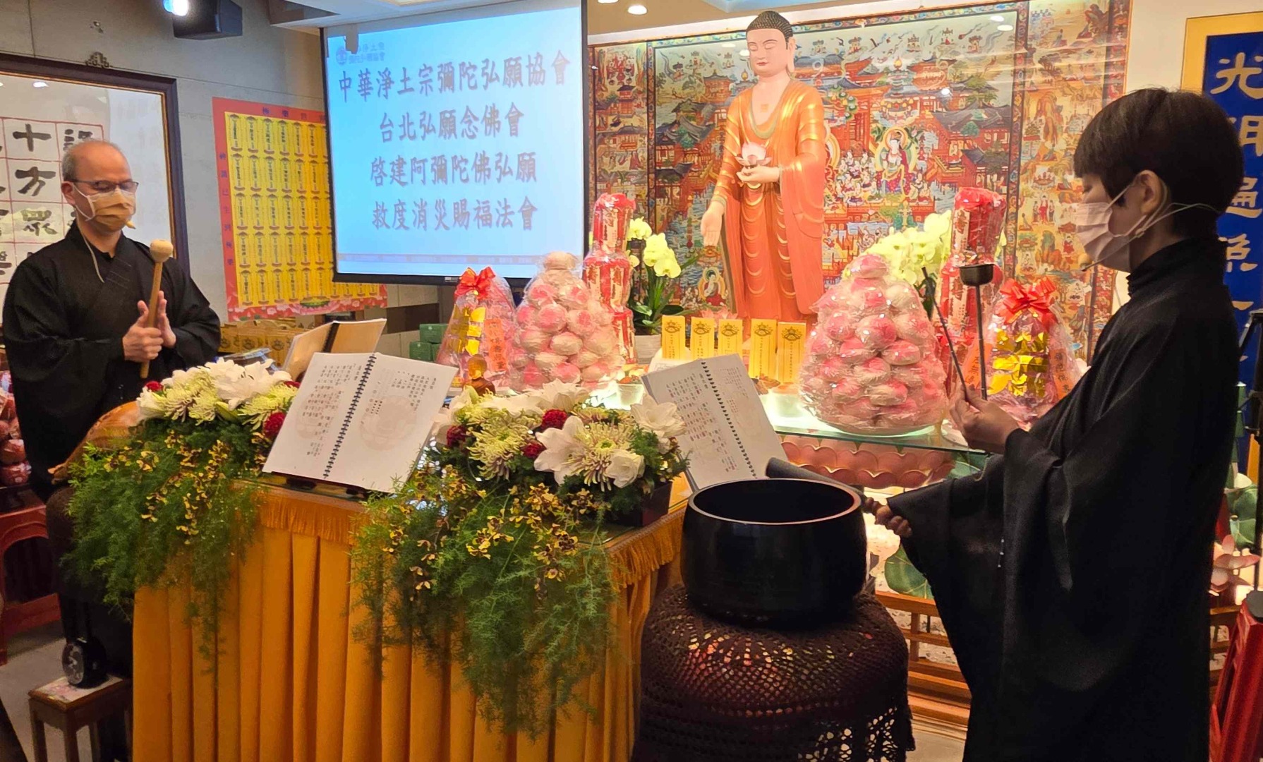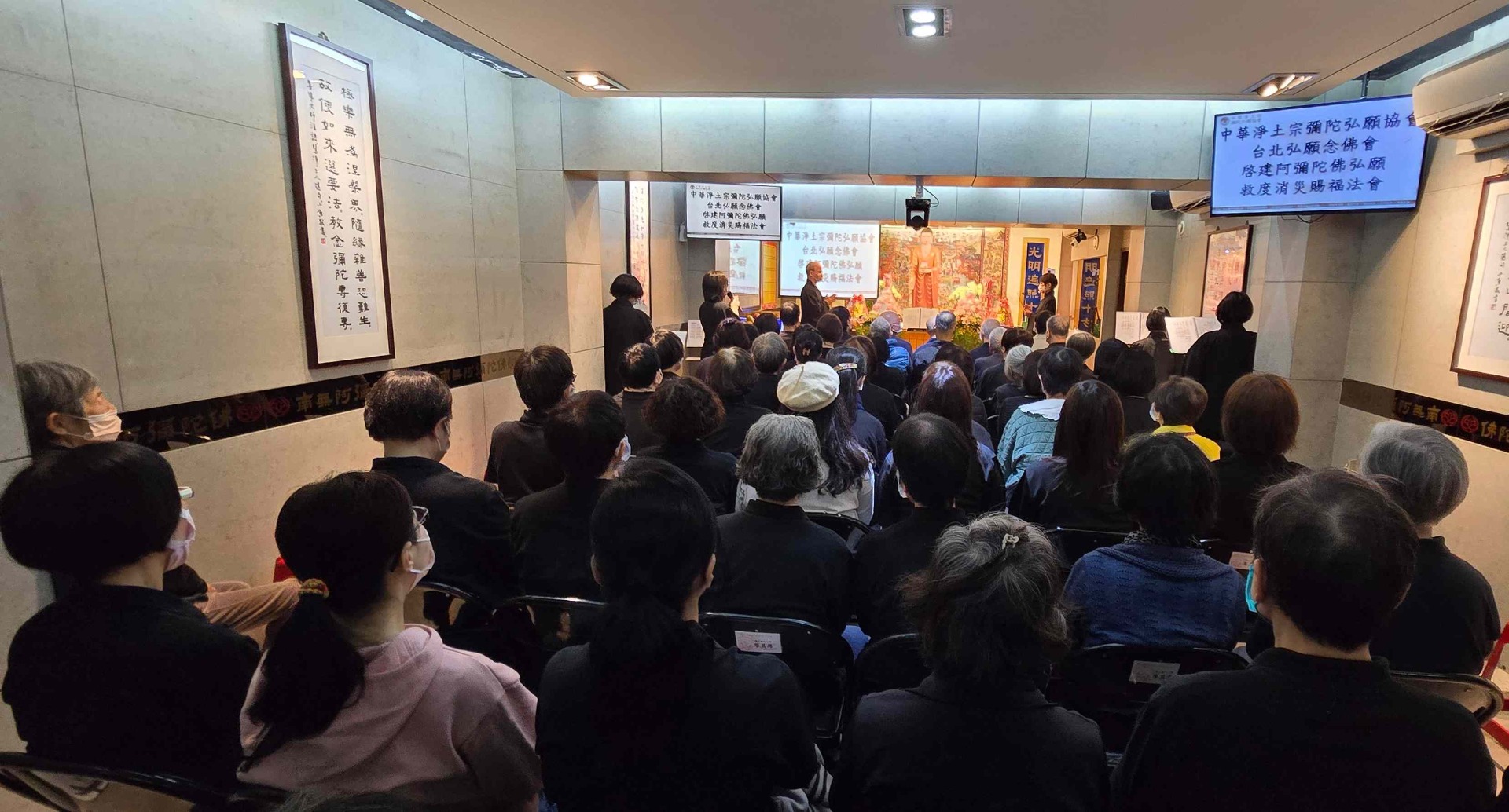 中華淨土宗彌陀弘願協會台北弘願念佛會今年迎來了一場與眾不同的彌陀聖誕法會,滿載新的感動、新的體悟,與溢滿心間的法喜。這場全新版本的法會,是由普陀師兄將淨土宗經典、祖語等慈悲教義、彌陀四十八大願,以及懺悔文深情集錄於梵唄之中,讓與會蓮友更了解法義,為新作偈文注入了柔和而動人的旋律,經梵唄組志工們無數次反覆用心演練而誕生。每一聲梵音如春風般拂過心田,溫潤且撫慰;又如晨鐘暮鼓,直擊人心最深處的門扉。彷彿沐浴在阿彌陀佛的慈光之下,內心泛起無盡的感恩與敬仰。現場的蓮友們在梵唄聲中共鳴,不禁潸然淚下,每一滴淚水,皆對佛恩的深切領受。