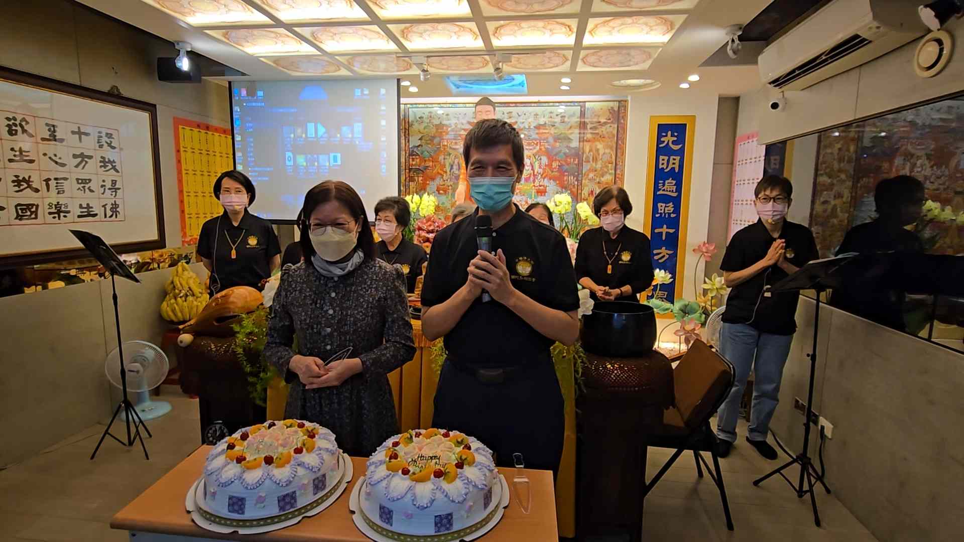 西元二零二四年、農曆十一月十七日為阿彌陀佛聖誕日,也是普陀師兄生日,普陀師兄、怡伶師姊與蓮友們齊聚弘願,為大慈悲父阿彌陀佛慶生,也為弘願大家長普陀師兄慶生,伴隨著蓮花隊佛曲獻唱聲中與念佛聲中,度過溫馨感恩的一天。